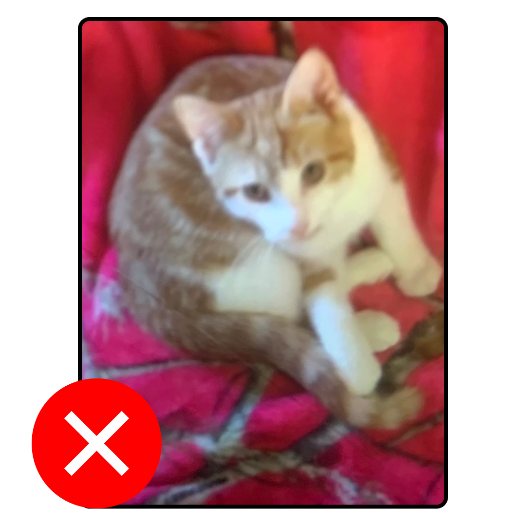 ❌ Avoid blurry or dark photos, as the details are harder to capture in the drawing.